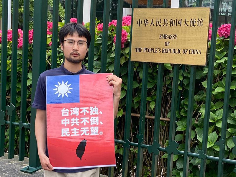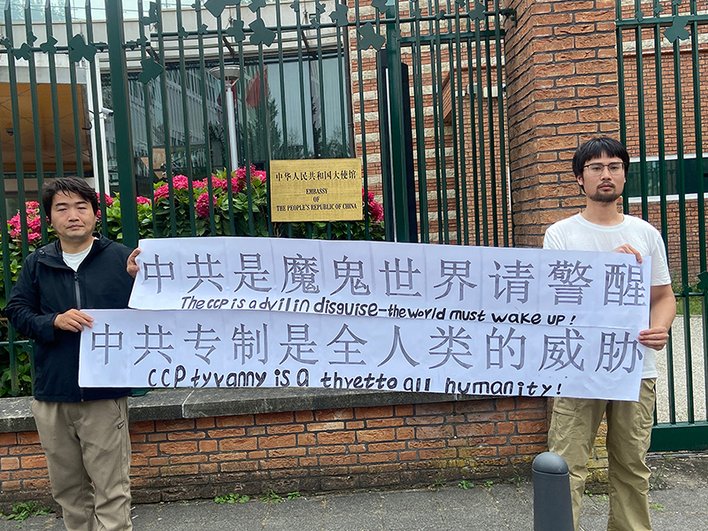 昨天,我和贺道圆在荷兰的中国大使馆门前,…
